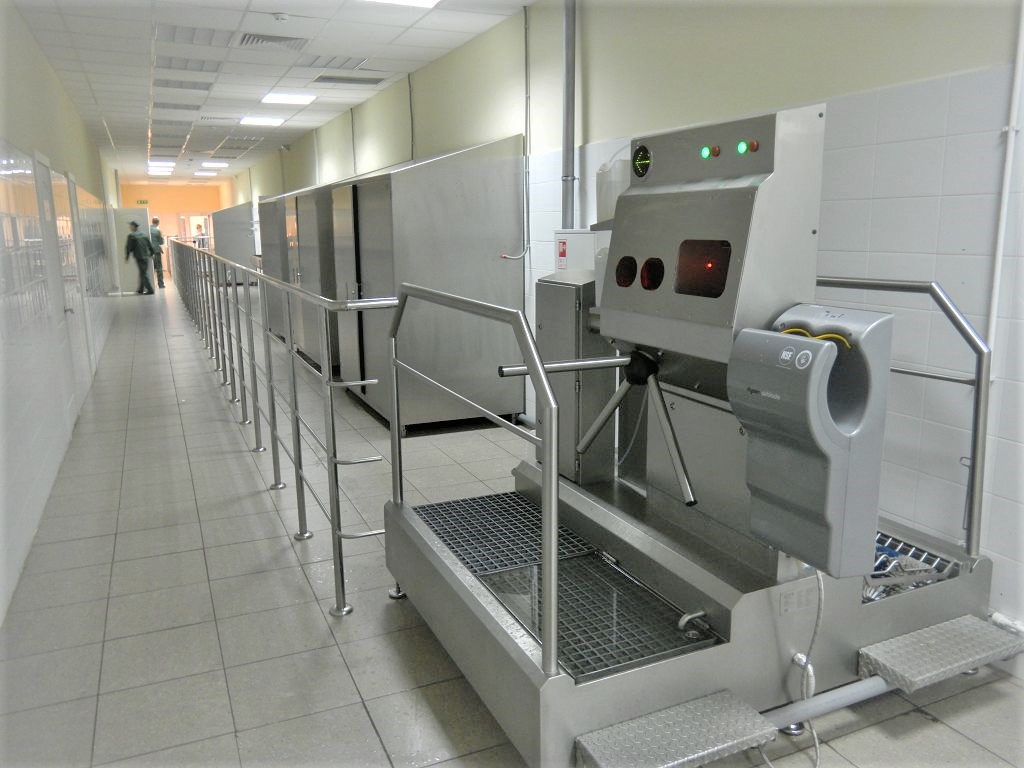 - Automatske kapije, sa okretnim vratima, za dezinfekciju ruku, opremljene horizontalnim i vertikalnim četkicama za cipele.